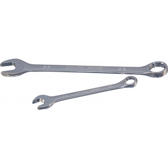 - **Описание** Самый распространенный гаечный ключ представляет собой конструкцию, объединяющую рожковую и накидную части. Инструмент изготовлен из высоколегированной стали, по стандарту ANSI/ASME B107.6 и соответствует требованиям ГОСТ 2838-80. Чечевичное сечение рукоятки с увеличенной толщиной ребра позволяет развить более высокий крутящий момент по сравнению с ключами двутаврового сечения европейского типа. Устойчивое к механическому воздействию и агрессивным средам зеркальное, трехслойное, хромоникелевое покрытие облегчает удаление загрязнений с инструмента после работы. Сочетание двух одноразмерных профилей компенсируют недостатки каждого в отдельности, обеспечивая передачу максимально возможной нагрузки на крепеж, при использовании накидной части и удобство использования рожковой части в труднодоступных местах. **Область применения** Ключи гаечные комбинированные ключи – универсальные гаечные ключи, совмещающие в себе функционал и преимущества рожковых и накидных ключей. Зевы комбинированных ключей имеют одинаковые размеры. Именно сочетание сильных сторон рожковых и накидных ключей и нивелирование сторон слабых делают комбинированные ключи исключительно широко востребованными со стороны потребителей и применяемыми в самых разных сферах – производственной, ремонтной, авторемонтной, бытовой и других. Ключи гаечные с открытым и кольцевым зевами предназначены для монтажа либо демонтажа резьбовых соединений. **Размеры**  | Артикул | Размер | B1, мм | Н1, мм | В2, мм | Н2, мм | L, мм | ПДН DIN (кгс/м) Р/Н | | --- | --- | --- | --- | --- | --- | --- | --- | | Артикул | Размер | B1, мм | Н1, мм | В2, мм | Н2, мм | L, мм | ПДН DIN (кгс/м) Р/Н | | --- | --- | --- | --- | --- | --- | --- | --- | | 030017 | 17 | 35,7 | 7,6 | 26,9 | 9,1 | 208 | 10.7/20.1 |