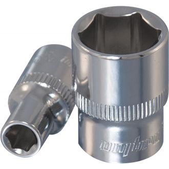 - **Описание** Зеркально отполированное хромоникелевое покрытие придает инструменту OMBRA безупречный вид и облегчает удаление загрязнений после работы. Накатка на переходах позволит надежно удерживать головку в руках, работая с крепежом при свободном вращении без использования дополнительных приводов. Торцевые головки OMBRA изготовлены из легированной хромованадиевой стали по технологии, позволяющей при использовании прилагать нагрузку, превыщающие предельно допустимые для подобного инструмента на 30-50%. **Область применения** Шестигранный рабочий профиль считается наилучшим с точки зрения приложения максимальных рабочих нагрузок, передаваемых крепежной детали. Система инструмента с присоединительным квадратом 1/4"DR является основной при работе с внешним рабочим профилем от 4 до 14 мм так как применение этой системы связано, в первую очередь, с обслуживанием изделий точной механики, электроники и бытовой техники, где рабочая зона ограничена и отсутствуют серьезные нагрузки. Так же применяется при производстве работ по обслуживанию автомобильной техники система незаменима для ремонта и установки малых агрегатов и навесного оборудования двигателей благодаря небольшим размерам. **Размеры**  | Артикул | Размер | D1, мм | D2, мм | T, мм | L, мм | ПДН DIN (кгс/м) | | --- | --- | --- | --- | --- | --- | --- | | Артикул | Размер | D1, мм | D2, мм | T, мм | L, мм | ПДН DIN (кгс/м) | | --- | --- | --- | --- | --- | --- | --- | | 114005 | 5 | 11,84 | 8,1 | 9,04 | 25 | 1,5 |