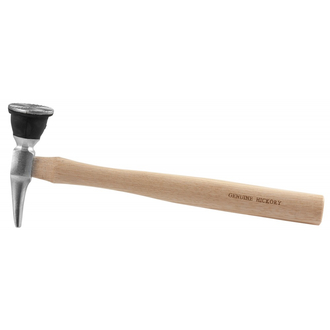 - **Описание** Молоток рихтовочный вытяжной, ударно-поворотный. Изготовлен из углеродистой стали. Рукоятка-орех (HIKORY). Особенность конструкции заключается в способности инструмента несколько поворачивать круглый боек вокруг своей оси в момент удара. **Область применения** Рихтовочных молоток с круглым бойком с грубой насечкой и «пикой». Применяется для первичной вытяжки металла при осложненных случаях.