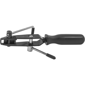 - **Описание** Приспособление для установки хомутов с резаком. Инструмент применяется для установки ленточных хомутов пыльников шарниров равных угловых скоростей (шрус). Встроенный резак укорачивает свободный конец ленты хомута на нужную длину после его установки. **Схема применения**