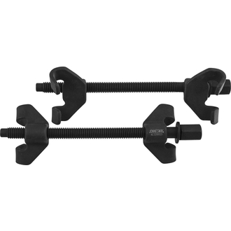 - **Описание** Стяжка пружин "усиленная" 270 мм. Плюсом стяжки являются компактные размеры, позволяющие использовать инструмент в ограниченном пространстве колесной арки, минусом – необходимость поочередной затяжки и отпуска ходовых винтов для предотвращения перекоса пружины. Изделие изготавливается из закаленной легированной хромомолибденовой стали, имеет защитное фосфатирование. При эксплуатации ограничено допускается применение механизированного инструмента. **Область применения** Предназначена для производства работ по обслуживанию упругих элементов подвески легковых автомобилей. Применяется для удержания спиральных пружин в сжатом состоянии и сжатия пружин подвески автомобиля полной массой до 2 тонн при их замене.