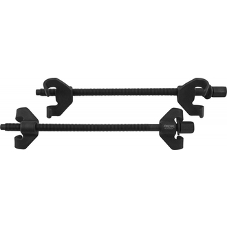 - **Описание** Стяжка пружин "усиленная" 370 мм. Плюсом стяжки являются компактные размеры, позволяющие использовать инструмент в ограниченном пространстве колесной арки, минусом – необходимость поочередной затяжки и отпуска ходовых винтов для предотвращения перекоса пружины. Изделие изготавливается из закаленной легированной хромомолибденовой стали, имеет защитное фосфатирование. При эксплуатации ограничено допускается применение механизированного инструмента. **Область применения** Предназначена для производства работ по обслуживанию упругих элементов подвески легковых автомобилей. Применяется для удержания спиральных пружин в сжатом состоянии и сжатия пружин подвески автомобиля полной массой до 2 тонн при их замене.