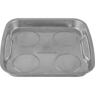 - **Описание** Биметаллический поддон, магнитный, прямоугольной формы 295х275х40 мм. Суммарная масса удерживаемых деталей может составлять до 6 кг, в вертикальном положении тарелки и 5 кг в перевернутом, благодаря применению четырех мощных неодимовых магнитов. Крышки магнитов, изготовленные из мягкой резины, защищают поверхности от возможных повреждений. **Область применения** Применяется для удержания во время ремонта техники железосодержащих деталей и инструментов крупных размеров (болты, гайки, шайбы, ключи, торцевые головки, ШГИ и т.д.). В поддоне надежно удерживаются детали в горизонтальном, вертикальном и перевернутом положении.