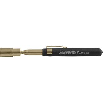- **Описание** Магнитная рукоятка с телескопической стрелой с максимальным вылетом 690 мм. В торце телескопической части установлен мощный неодимовый магнит, позволяющий удерживать железосодержащие детали массой до 2 кг. Корпус магнита одновременно является патроном лампы подсветки и контейнером для элементов питания типа LR44 (AG13). **Область применения** Инструмент применяется для извлечения предметов из труднодоступных, затемненных мест. Для удобства хранения инструмента в кармане, обрезиненная рукоятка снабжена зажимом.