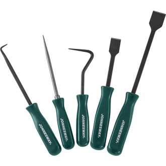 - **Описание** Комплект автомобильных скарпелей из 5 предметов **Область применения** Набор инструментов для удаления загрязнений, пластовой коррозии, герметиков и т.п. перед обработкой поверхностей. Скарпель плоский L=275 мм Скарпель плоский L=210 мм Шило Крюк шпоночный Крюк-съемник патрубков