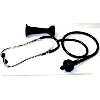 - **Описание** Стетоскоп для обнаружения дефектов в механике. При использовании раструба, инструмент применяется для обнаружения шумов в системах трубопроводов и муфт приводов вентиляторов. **Область применения** Прибор является средством субъективной диагностики и применяется для точного, обнаружения и локализации точек нарушений в работе узлов и механизмов способом акустического сопоставления. Звуковые колебания передаются через щуп на мембрану устройства, что позволяет устанавливать источник шумов, находящийся в труднодоступном месте.