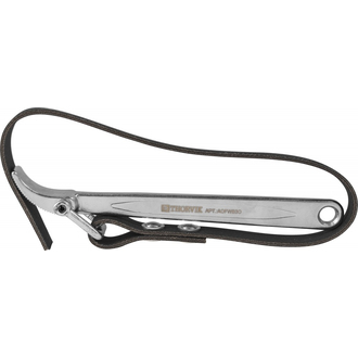 - **Описание** Ключ ременный для непрофилированных деталей с диапазоном до 220 мм. В качестве захвата инструмента используется затягивающийся в петлю ремень, изготовленный из специального, фрикционного материала. **Область применения** Применяется для обслуживания непрофилированных деталей, таких как корпусные масляные фильтры. **Схема применения** ****