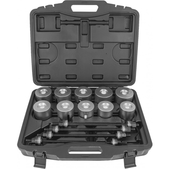 - **Описание** Инструмент универсальный для замены сайлентблоков в наборе, 44-82 мм из 24х предметов. Набор предназначен для производства работ по замене сайлентблоков при обслуживании подвески автомобилей. Широкий диапазон размеров оправок, входящих в комплект набора, позволяет обслуживать максимально возможный спектр транспортных средств. \[%53383%\] Ходовой винт с гайками в сборе, М10х360 мм \[%53384%\] Ходовой винт с гайками в сборе, М12х360 мм \[%53385%\] Ходовой винт с гайками в сборе, М14х360 мм \[%53386%\] Ходовой винт с гайками в сборе, М16х360 мм Оправка внутренний/наружный диаметр, Ø 34/44 мм Оправка внутренний/наружный диаметр, Ø 36/46 мм Оправка внутренний/наружный диаметр, Ø 38/48 мм Оправка внутренний/наружный диаметр, Ø 40/50 мм Оправка внутренний/наружный диаметр, Ø 42/52 мм Оправка внутренний/наружный диаметр, Ø 44/54 мм Оправка внутренний/наружный диаметр, Ø 46/56 мм Оправка внутренний/наружный диаметр, Ø 48/58 мм Оправка внутренний/наружный диаметр, Ø 50/60 мм Оправка внутренний/наружный диаметр, Ø 52/62 мм Оправка внутренний/наружный диаметр, Ø 54/64 мм Оправка внутренний/наружный диаметр, Ø 56/66 мм Оправка внутренний/наружный диаметр, Ø 58/68 мм Оправка внутренний/наружный диаметр, Ø 60/70 мм Оправка внутренний/наружный диаметр, Ø 62/72 мм Оправка внутренний/наружный диаметр, Ø 64/74 мм Оправка внутренний/наружный диаметр, Ø 66/76 мм Оправка внутренний/наружный диаметр, Ø 68/78 мм Оправка внутренний/наружный диаметр, Ø 70/80 мм Оправка внутренний/наружный диаметр, Ø 72/82 мм Пластиковый кейс