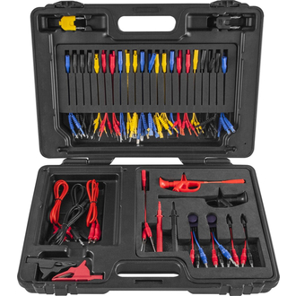 - **Описание** Набор переходников для тестирования электросистемы автомобиля. Соединительные кабели. Все коммутации рассчитаны на подключение к стандартным разъемам мультиметра. (Мультиметр в комплект поставки не входит). **Область применения** Универсальный набор применяется для контроля работоспособности элементов низковольтных систем электрооборудования автомобильной и автотракторной техники. Комплект содержит: переменное сопротивление (5КΩ), светодиодный тестер полярности, разъем для установки и проверки SRS (датчика подушки безопасности), зажимы «крокодил», набор игольчатых щупов, разветвитель 1х2, коннекторы с игольчатыми зажимами и набор клемных коннекторов, для круглых и плоских клемм различных производителей. Переменное сопротивление (5КΩ) Светодиодный тестер полярности Разъем для установки и проверки SRS (датчика подушки безопасности) Зажимы «крокодил» Набор игольчатых щупов Разветвитель 1х2 Коннекторы с игольчатыми зажимами для круглых и плоских клемм различных производителей Набор клеммных коннекторов для круглых и плоских клемм различных производителей; Соединительные кабели Пластиковый кейс