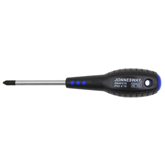 - **Описание** Стержневая отвертка популярной серии Jonnesway «FULL STAR», изготовлена в соответствии с требованиями стандарта DIN 5262, отвечает техническим условиям ГОСТ 17199-88. Изделие комплектуется высококачественным стержнем из хромомолибденованадиевой стали, намагниченная рабочая часть отвертки в состоянии удерживать крепеж, что очень часто помогает при работе в труднодоступных местах, а изготовленна из бензомаслостойкого АБС пластика рукоятка удобно лежит в руке. **Область применения** Применяются со всеми видами крепежа, имеющего врутренний рабочий профиль PH (крестовой). **Размеры** | Артикул | Профиль | Длина жала, мм | Общая длина, мм | Вес, гр | Код | | --- | --- | --- | --- | --- | --- | | Артикул | Профиль | Длина жала, мм | Общая длина, мм | Вес, гр | Код | | --- | --- | --- | --- | --- | --- | | D04P275 | PH2 | 75 | 188 | 89 | 47907 |
