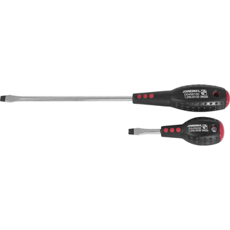 - **Описание** Стержневая отвертка популярной серии Jonnesway «FULL STAR», изготовлена в соответствии с требованиями стандарта DIN 5262, отвечает техническим условиям ГОСТ 17199-88. Изделие комплектуется высококачественным стержнем из хромомолибденованадиевой стали, намагниченная рабочая часть отвертки в состоянии удерживать крепеж, что очень часто помогает при работе в труднодоступных местах, а изготовленна из бензомаслостойкого АБС пластика рукоятка удобно лежит в руке. **Область применения** Применяются со всеми видами крепежа, имеющего врутренний рабочий профиль SL (шлицевой). **Размеры** | Артикул | Профиль | Длина жала, мм | Общая длина, мм | Вес, гр | Код | | --- | --- | --- | --- | --- | --- | | Артикул | Профиль | Длина жала, мм | Общая длина, мм | Вес, гр | Код | | --- | --- | --- | --- | --- | --- | | D04S6100 | SL 6.5 | 100 | 212 | 95 | 47075 |