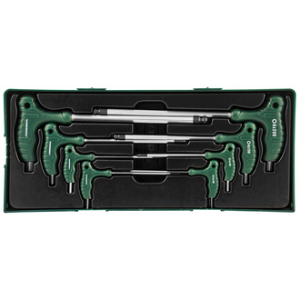 - **Описание** Комплект угловых шестигранников двусторонних с шаром 2-10мм , 8 предметов (ложемент 420х180 мм). **Область применения** Набор угловых отверток (торцевых ключей) шестигранные, двусторонние с шаром для работы с внутренним шестигранным профилем. H2х100 мм H2.5х100 мм H3х100 мм H4х100 мм H5х150 мм H6х150 мм H8х200 мм H10х200 мм