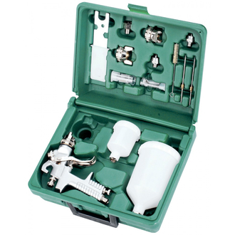 - **Описание** Набор пистолет покрасочный "Краскопульт" JA-6111 с аксессуарами, 15 предметов. Пневматические покрасочные пистолеты марки Jonnesway предназначены для проведения внутренних и наружных малярноотделочных работ различными типами лакокрасочных материалов с возможностью подключения к воздушной магистрали с давлением воздуха не ниже 6 атм. или компрессором, такой же мощности и производительностью не ниже 400 л/мин. **Область применения** Покрасочный пистолет конвенционального типа с нижним бачком и принудительной подачей ЛКМ применяется для производства малярных работ при окраске больших по площади поверхностей всеми типами лакокрасочных материалов, за исключением водорастворимых\*. **Технические характеристики** | Рабочее давление | 3,5 - 5 кгс/см2 | | --- | --- | | Рабочее давление | 3,5 - 5 кгс/см2 | | --- | --- | | Воздушный штуцер | 1/4" | | Штуцер резервуара | М16х1,5 мм | | Расход воздуха | 396 л/мин | | Вес | 0,7 кг | | Емкость резервуара | 0,6 л | | Материал резервуара | Нейлон | | Применяемые дюзы | 1; 1,2; 1,3; 1,4; 1,5; 1,7; 2,3; 2,5; 3 | | Стандартная дюза | 1,4 мм | | Габаритные размеры | 170х325 мм | | Способ подачи ЛКМ | Гравитационный | | \*Возможность применения водорастворимых ЛКМ | Опционно, при использовании комплекта дюзы из нержавеющей стали | | Габариты | 260х330х140 мм | \[%47103%\] Пневматический покрасочный пистолет JA-6111 Резервуары для ЛКМ 0,15 и 0,6 л Комплекты сменных дюз 1.7 и 2.0 мм Адаптер воздушный Комплект для ремонта и регулировки Комплект для чистки и обслуживания Пластиковый кейс