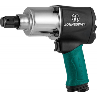 - **Описание** Пневматический гайковерт с размером привода 3/4"DR, применяющийся для обслуживания резьбовых соединений размерами до М21 с максимальным моментом 985 Nm. По конструкции инструмент аналогичен изделию JAI-1054, за исключением увеличенной массы ударного механизма, что при сохранении основных весовых характеристик позволяет отнести его к разряду облегченных по сравнению с изделиями с размером привода 3/4"DR. Небольшой вес и компактные размеры обеспечивают снижение утомляемости оператора при массовом производстве, а резинополимерная накладка рукоятки снижает вибрационные воздействия. Во время производства работ с применением пневматических ударных гайковертов, рекомендуется использование перчаток с виброгасящими накладками и средств защиты органов зрения и слуха. **Область применения** Пневмомеханические гайковерты Jonnesway применяются для проведения слесарно-монтажных работ и работ, связанных с обслуживанием резьбовых соединений в мастерских, цехах и производственных помещениях, имеющих источник сжатого воздуха или компрессор, необходимой мощности и производительности с давлением не ниже 6 кг/см²., в температурном диапазоне от -20°С до +50°С, персоналом, имеющим соответствующую квалификацию, знакомым с правилами техники безопасности, условиями эксплуатации и навыками работы с пневмомеханическим инструментом. **Технические характеристики** | Присоединительный квадрат | 3/4"DR | | --- | --- | | Присоединительный квадрат | 3/4"DR | | --- | --- | | Частота свободного вращения | 6300 об/мин | | Крутящий момент mах | 985 Нм | | Крутящий момент рабочий | 850 Нм | | Давление магистрали mах | 6,3 кгс/см² | | Расход воздуха циклический | 184 л/мин | | Диаметр воздушного шланга | 10 мм | | Штуцер | 1/4"DR | | Длина | 217 мм | | Масса | 3,0 кг | | Механизм привода | Двойной молоток | | Направление выхлопа | Вниз | Уровень вибрации и шума изделия соответствует ГОСТ Р ИСО 28927-10-2013 и ГОСТ 31337-2006 (ИСО 15744:2002) соответственно. Гайковерт ударный Краткая инструкция на русском языке Гарантийный талон