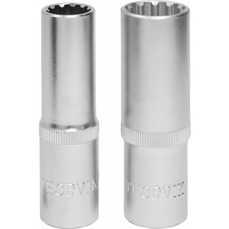 - **Описание** Головка торцевая глубокая MultiProf 1/2"DR, 17 мм. Торцевые головки Thorvik изготовлены с применением технологий, позволяющих передавать усилия, превышающие расчетные по современным стандартам на 30%. Широкий диапазон размеров, типов и профилей, высокая точность обработки, качественная хромованадиевая сталь и устойчивое хромоникелевое покрытие делают инструмент надежным и долговечным. Торцевые головки Thorvik являются основной для создания систем сборного слесарно-монтажного инструмента. Изделия производятся на современном оборудовании по стандарту DIN 3124, в соотвествии с ГОСТ 25604-83. **Область применения** Применяется для гаек и головок болтов 6-и и 12-гранных метрических размеров, 6-и и 12-гранных дюймовых размеров, болтов внешний Torx, Spline, головок крепежа четырех и трехгранных. " MultiProf" способна справится с поврежденным (скругленным до 30%) крепежом. Система слесарно-монтажного инструмента " MultiProf" имеет широкую область применения: рекомендована к эксплуатации в условиях промышленных предприятий с высокой степенью интенсивности использования ручного инструмента, организаций технического обслуживания авиационной, автотранспортной и сельскохозяйственной техники. **Размеры**  | Артикул | Размер | D2, мм | D1, мм | T, мм | L, мм | Вес, кг | | --- | --- | --- | --- | --- | --- | --- | | Артикул | Размер | D2, мм | D1, мм | T, мм | L, мм | Вес, кг | | --- | --- | --- | --- | --- | --- | --- | | MP11217 | 17 | 22,06 | 23,98 | 31,9 | 77,15 | 0,12 |
