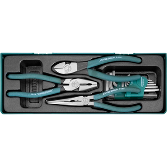 P018SP1 Набор шарнирно-губцевого инструмента, 3 предмета с набором ключей торцевых Н1,5-Н10 мм, 9 предметов в ложементе