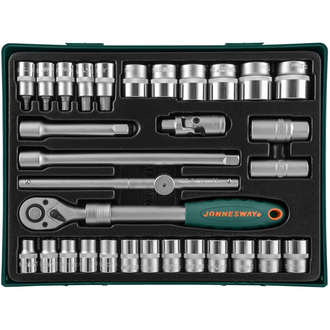 - **Описание** Набор торцевых головок 1/2"DR с аксессуарами в ложементе 370x280 мм, 31 предмет. **Область применения** Набор торцевых головок применяется для производства слесарно-монтажных и ремонтных работ. \[%47207%\] Головка торцевая 1/2"DR, 10 мм \[%47208%\] Головка торцевая 1/2"DR, 11 мм \[%47209%\] Головка торцевая 1/2"DR, 12 мм \[%47210%\] Головка торцевая 1/2"DR, 13 мм \[%47211%\] Головка торцевая 1/2"DR, 14 мм \[%47212%\] Головка торцевая 1/2"DR, 15 мм \[%47213%\] Головка торцевая 1/2"DR, 16 мм \[%47214%\] Головка торцевая 1/2"DR, 17 мм \[%47215%\] Головка торцевая 1/2"DR, 18 мм \[%47216%\] Головка торцевая 1/2"DR, 19 мм \[%47217%\] Головка торцевая 1/2"DR, 20 мм \[%47218%\] Головка торцевая 1/2"DR, 21 мм \[%47219%\] Головка торцевая 1/2"DR, 22 мм \[%47220%\] Головка торцевая 1/2"DR, 23 мм \[%47221%\] Головка торцевая 1/2"DR, 24 мм \[%47224%\] Головка торцевая 1/2"DR, 26 мм \[%47390%\] Головка торцевая 1/2"DR, 27 мм \[%47227%\] Головка торцевая 1/2"DR, 30 мм \[%47447%\] Головка торцевая 1/2"DR, 32 мм Головки торцевые свечные, 2 шт.: 16, 21 мм \[%47876%\] Насадка торцевая 1/2"DR с вставкой-битой, 55 мм, Н5 \[%47877%\] Насадка торцевая 1/2"DR с вставкой-битой, 55 мм, Н6 Насадка торцевая 1/2"DR с вставкой-битой, 55 мм, Н8 Насадка торцевая 1/2"DR с вставкой-битой, 55 мм, Н10 Насадка торцевая 1/2"DR с вставкой-битой, 55 мм, Н12 Рукоятка трещоточная телескопическая, 72 зубца, 300-440 мм., R5104 \[%47288%\] Вороток Т-образный 1/2"DR, 250 мм Удлинители, 2 шт.: 125, 250 мм Шарнир карданный Ложемент 370х370 мм