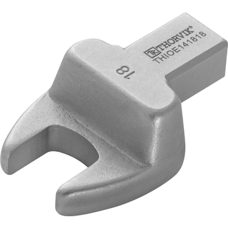 - **Описание** Сменная вставка рожковая 18 мм с посадочным прямоугольным профилем 14х18 мм предназначена для использования совместно с динамометрическими ключами, имеющими соответствующее посадочное гнездо. Применяется при ремонте и сервисном обслуживании автомобильной, мото-, авиа- и другой техники, промышленного оборудования, конструкций и т.д. **Размеры**  | Артикул | В, мм | Профиль, мм | W, мм | H, мм | L, мм | L1, мм | L2, мм | Вес, гр | | --- | --- | --- | --- | --- | --- | --- | --- | --- | | Артикул | В, мм | Профиль, мм | W, мм | H, мм | L, мм | L1, мм | L2, мм | Вес, гр | | --- | --- | --- | --- | --- | --- | --- | --- | --- | | THIOE141818 | 18 | 14х18 | 42.0 | 10.0 | 65 | 32.0 | 15.0 | 192 |
