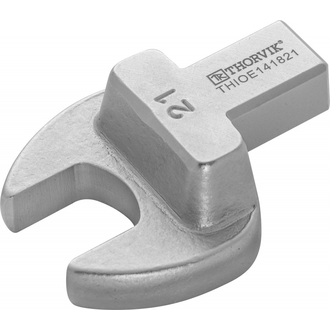 - **Описание** Сменная вставка рожковая 21 мм с посадочным прямоугольным профилем 14х18 мм предназначена для использования совместно с динамометрическими ключами, имеющими соответствующее посадочное гнездо. Применяется при ремонте и сервисном обслуживании автомобильной, мото-, авиа- и другой техники, промышленного оборудования, конструкций и т.д. **Размеры**  | Артикул | В, мм | Профиль, мм | W, мм | H, мм | L, мм | L1, мм | L2, мм | Вес, гр | | --- | --- | --- | --- | --- | --- | --- | --- | --- | | Артикул | В, мм | Профиль, мм | W, мм | H, мм | L, мм | L1, мм | L2, мм | Вес, гр | | --- | --- | --- | --- | --- | --- | --- | --- | --- | | THIOE141821 | 21 | 14х18 | 53.0 | 10.0 | 66 | 32.0 | 15.0 | 217 |