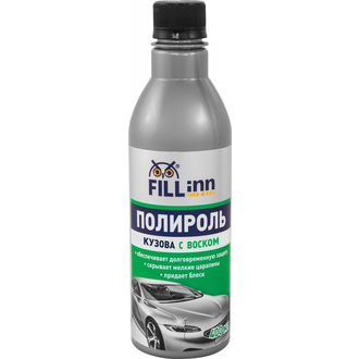 - **Описание** Улучшает внешний вид автомобиля, обеспечивает долговременную защиту лакокрасочного покрытия от неблагоприятного воздействия окружающей среды (ультрафиолетовых лучей, перепада температур, атмосферных осадков). Благодаря уникально подобранному составу, в который входит натуральный карнаубский воск и синтетические полимеры, полироль FILL Inn скрывает мелкие царапины и устраняет разводы, придает кузову автомобиля превосходный бриллиантовый блеск. **Область применения** Обладает высокими водоотталкивающими свойствами. Подходит для быстрой полировки как влажной, так и сухой поверхности кузова.