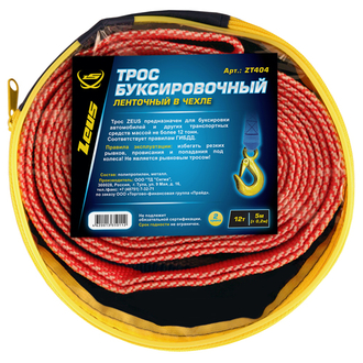 ZT404 Трос буксировочный ленточный 12 тонн с 2 крюками в чехле